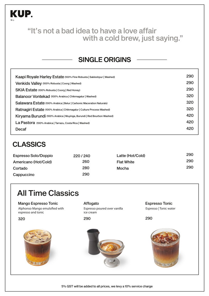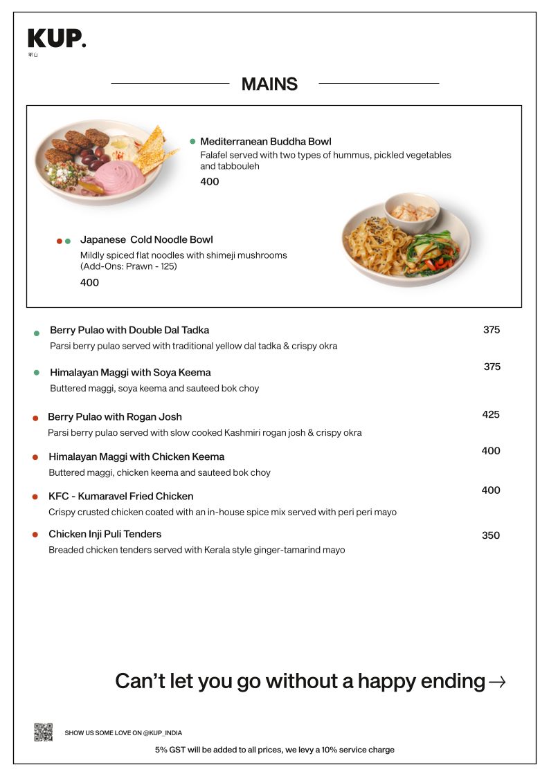 KUP Budan House - Alwarpet Menu